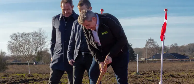 Friday 28 January 2022 was an important day for Energy Cool and a day that has been looked forward to for a long time. The day was the day for the first sod to be broken for a new domicile in Fredericia. The new address will be in Prins Georgs Kvarter, Fredericia, and founder and CEO Henrik Thorsen, together with business director Kristian Bendix Drejer and co-owner Lars Frank, broke ground for a green factory with a unique X-shaped architecture.